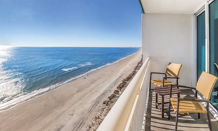 For an on-the-beach vacation experience, book your suite at the luxury Towers on the Grove located in North Myrtle Beach, South Carolina. With many units overlooking the ocean with panoramic views, this family-friendly property has it all including a lazy river, pool, hot tub, as well as studio, one, two, and three-bedroom spacious, modern suites.