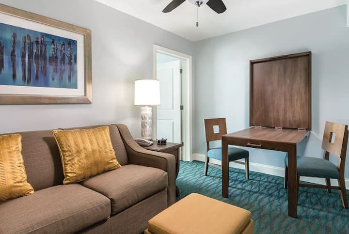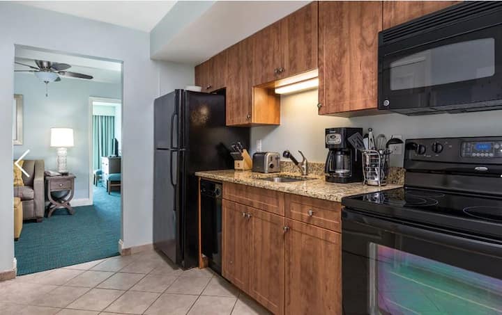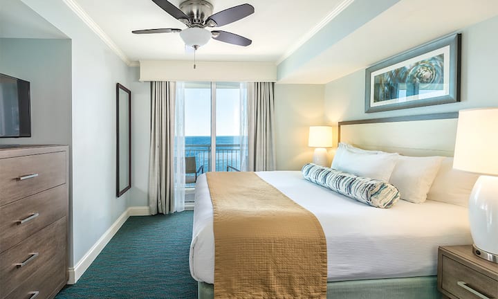 Booking a suite here gives you private beach access in the Cherry Grove shores, putting watersports and adventuring right at your fingertips. Enjoy a day of jet skiing or parasailing, or simply sunbathe on the beach while drinking in the sun. Myrtle Beach offers shopping, fine dining and nightlife as well as amusement parks and golf courses.