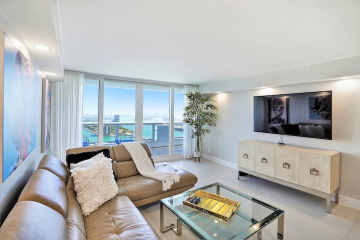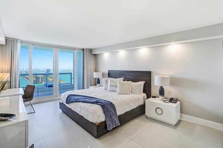 Bluewater Realty Miami welcomes you to The Grand, located in Downtown Miami on Biscayne Bay. Our 2 bedroom Sunset Hideaway! is equipped with everything you could need. Enjoy stunning direct water views of Biscayne Bay and Heart island that will leave you in awe. With South Miami Beach 3 miles away, you can enjoy the sun of Miami Beach while still feeling the energy of downtown Miami, giving you the ultimate Miami experience.