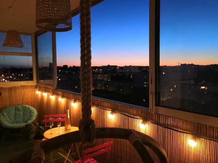 ★★★ VERANDA TERASSE PANORAMA view WOW! Exceptional sunset view, blue sky, above the roofs, not overlooked ★★★★
