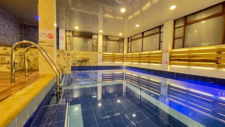 Shared indoor pool – available all year, open specific hours, lap pool, pool cover