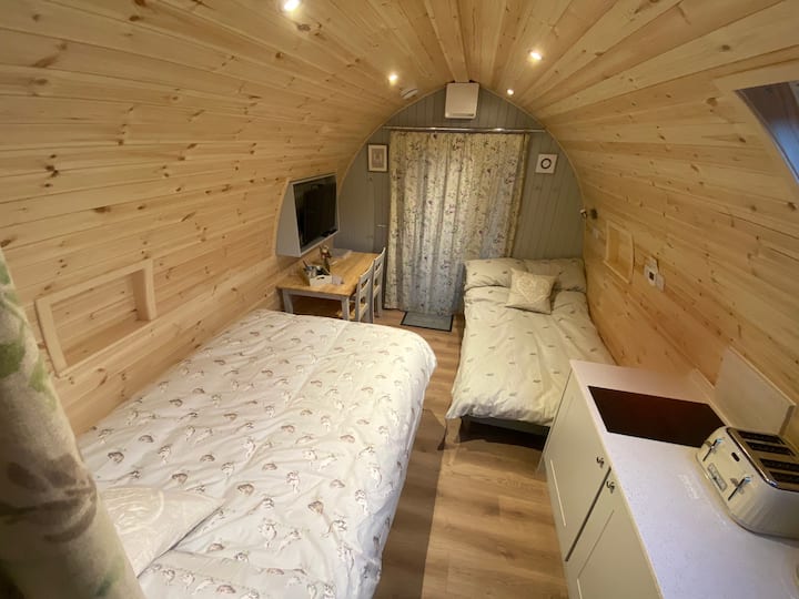 Glamping pod nestled in a wood in the South Downs.