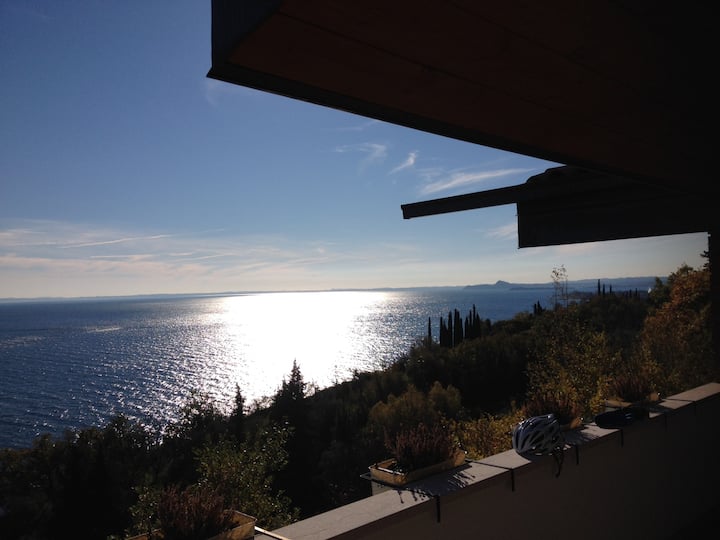 A balcony overlooking Lake Garda