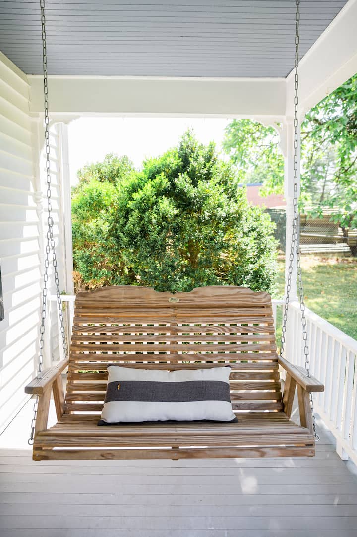 The front porch provides a beautiful location to watch traffic meander down Main Street, with the pinkish hue of sunsets provide a breathtaking backdrop.