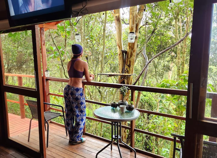 Exclusively for our visitors, away from the bustle of the city, totally independent and private with no neighbors around you, you will have the visit of the wonderful animals such as the canyon, squirrels, toucans and other birds.