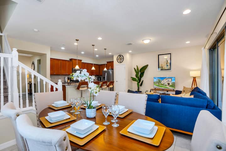 We invite you to our Beautiful 5 Bedroom / 4.5 Bathroom corner lot Townhome with private swimming pool and all the amenities necessary for your family and friends to spend a precious and memorable vacation in Orlando.