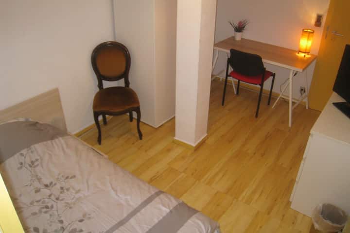 My father and I manage our private rooms in our large guest house. We offer various comfortable accommodations. Close to the city center and shops and restaurants, the place is really quiet. Parking on site is free and the garden at your disposal. Bakery and small restaurant at 50 meters. Ideally located halfway between Colmar and Mulhouse(25 km) to discover the wine route, take Grand Ballon hikes on foot or bikes or take the stage of the Chemin de Compostelle.