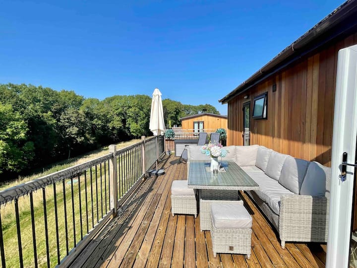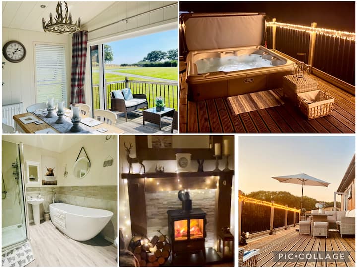 Beech lodge is a modern Cedar log cabin/luxury lodge with sunken hot tub in a beautiful private Holiday Lodge Park of only 12 lodges on a 7 acre site.