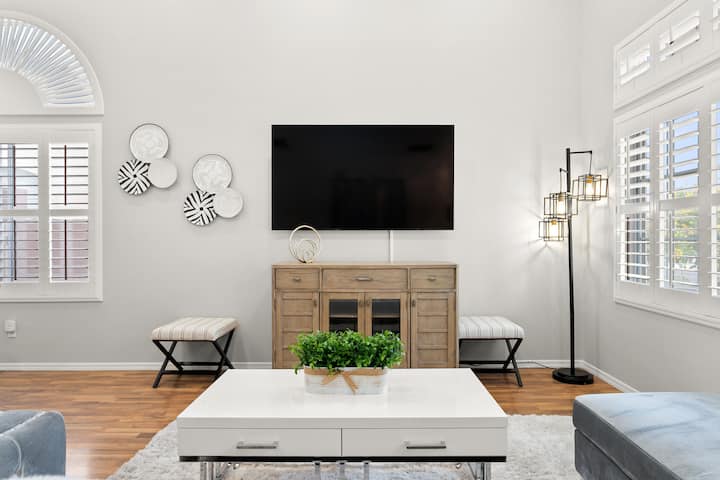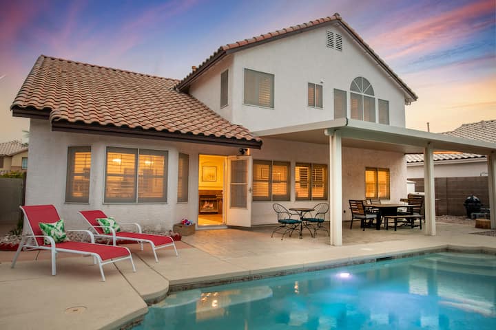 Looking for the perfect home to accommodate your group? Look no further, our 5 bed 3 bath chic oasis awaits! Our 2600sqft spacious home, nestled in the Henderson neighborhood just outside of Las Vegas, is the perfect group getaway.