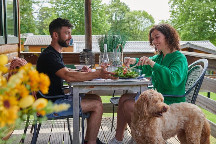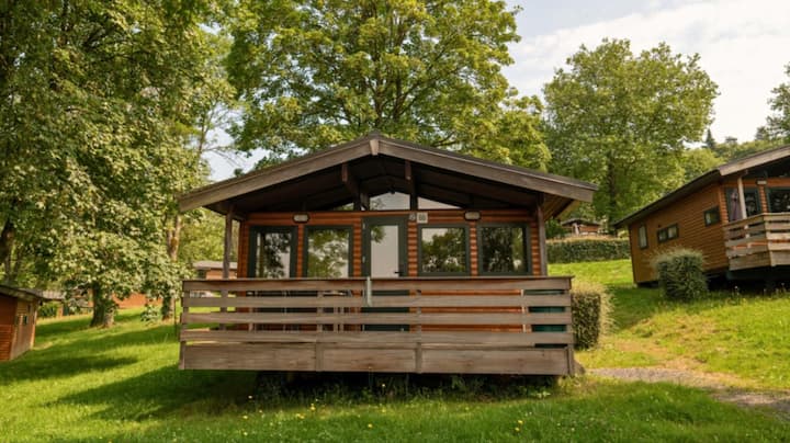 Vallée Les Etoiles is located in the Belgian Ardennes on a sunny southern slope above the river Meuse. The park has a surface of 28 hectares and each luxurious chalet offers plenty of space and privacy. From the terrace you can peacefully enjoy the Meuse valley.