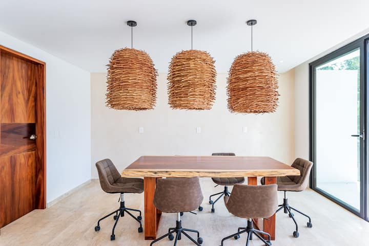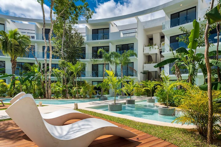 Luxurious and modern Condo complex immersed in the Most emblematic and mystical ecosystem of the Caribbean. With the first 100% Electric Drone for passengers in Latin America, eco-friendly, powered by sustainable clean energies, with its water treatment system, solar panels, and the first vertical wind turbine in Latin America. Managed by "Rentals Los Amigos Tulum"