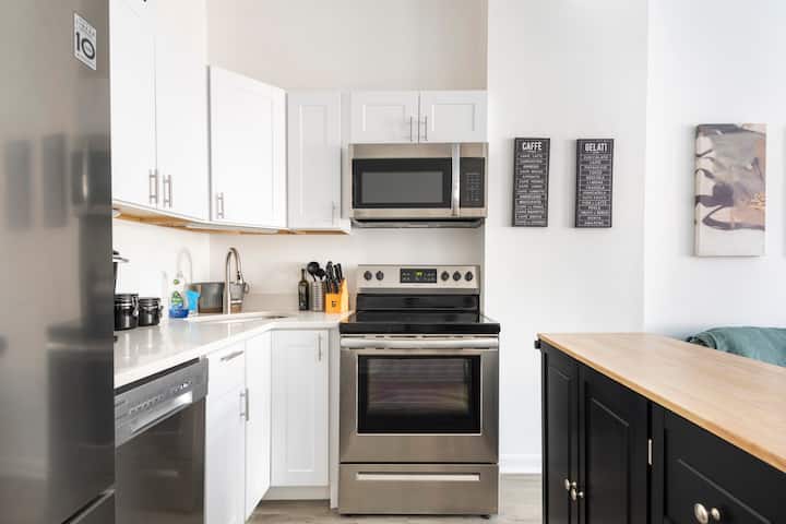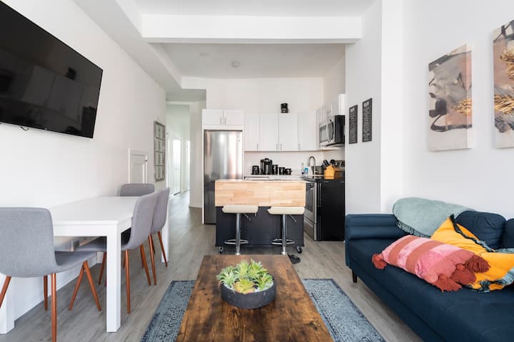 Newly renovated /decorated 2BR apartment in the heart of trendy Bloomingdale, D.C. Features high ceilings, and lots of light. Fully furnished and equipped with everything you need, including a dishwasher. Plenty of free street parking is available. Just steps away from local nightlife and easy to get in and out of the city by car, train, or plane. A stylish and modern space that provides everything you need for a comfortable and convenient stay.