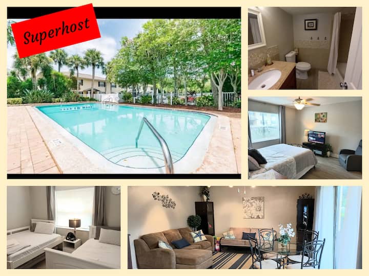 Remodeled 2/2 King Bed pool and grill, 5min> beach