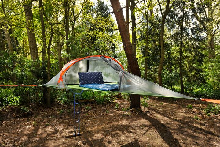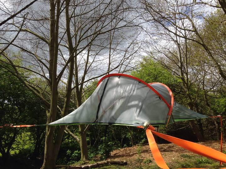 Wardley Hill Campsite is an ecological campsite in the Waveney Valley. Wild flowers and grass are left to grow to encourage butterflies and bees, although there is still plenty of space to throw a frisbee or perhaps have a game of rounders. Our six-acre site has some woodland, three seasonal ponds and a stream . Our car free camping field is exclusively for tents while campervans are also welcome to stay with us in a separate area. Our airbnb accommodations include a shepherds hut, full on glamping tents and for the adventurous a suspended tree tent. Our facilities on site offer an authentic back-to-basics camping experience with clean composting toilets for guests to use. Campfires are encouraged and dogs on leads welcome. Wardley hill campsite is owned and run by Joe, Holly and their son on the family farm.