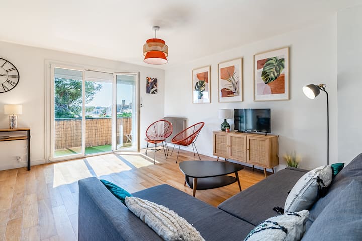 Lovely 3-bed unit w/ balcony & AC close to the sea