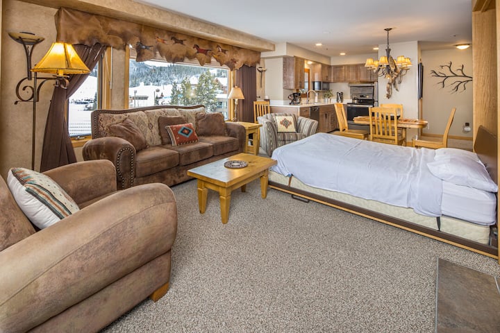 With beautiful views of Andesite and the invaluable location with ski-in/ski-out access, you don't want to miss this cozy condo! The Shoshone Condominium Hotel is conveniently located in the heart of Big Sky’s Mountain Village. Sitting at the base of the iconic Lone Peak, this Shoshone condo is ski-in/ski-out and less than 100 yards from the main Big Sky ticket window, retail, restaurants and grocery store. The Shoshone fitness center is complementary, and includes an exercise room, heated outdoor pool and indoor hot tub, and is adjacent to the Yellowstone Conference Center and Huntley Lodge and restaurant.