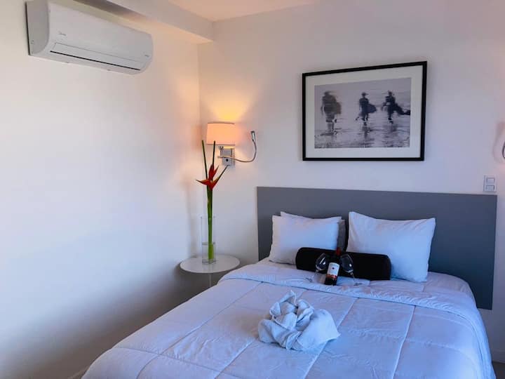 All hotel rooms, include private bathroom, air conditioning, TV, desk, closet and breakfast.