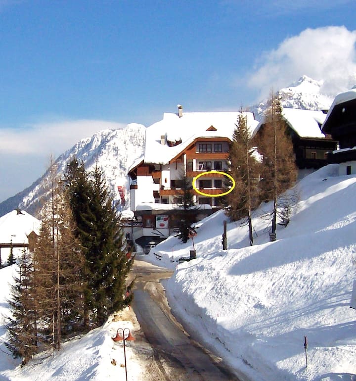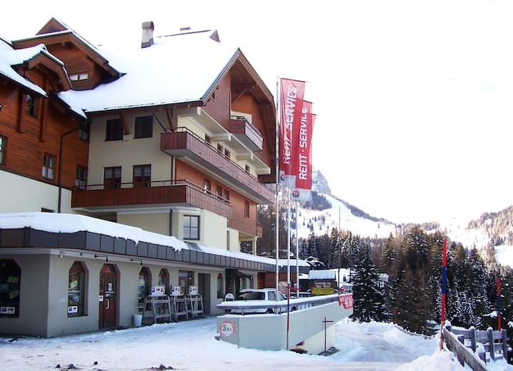 The ****APARTMENT "SONJA" is on the slopes NEXT TO THE 4-CHAIR SKILIFT on Nassfeld in the center of Sonnleitn in HOUSE CARINTHIA, Sonnleitn 11. You can put on and off the skis at our housedoor." You can ski to door".