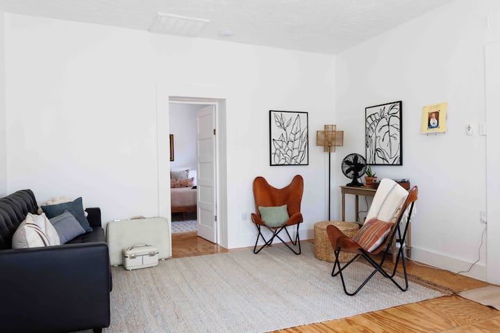 Perfect for a single, family, or small group of travelers, this charming suite has access to all of the BOHEMIO amenities on property. Enjoy two queen bedrooms a living room, and steam shower only a few blocks from downtown.