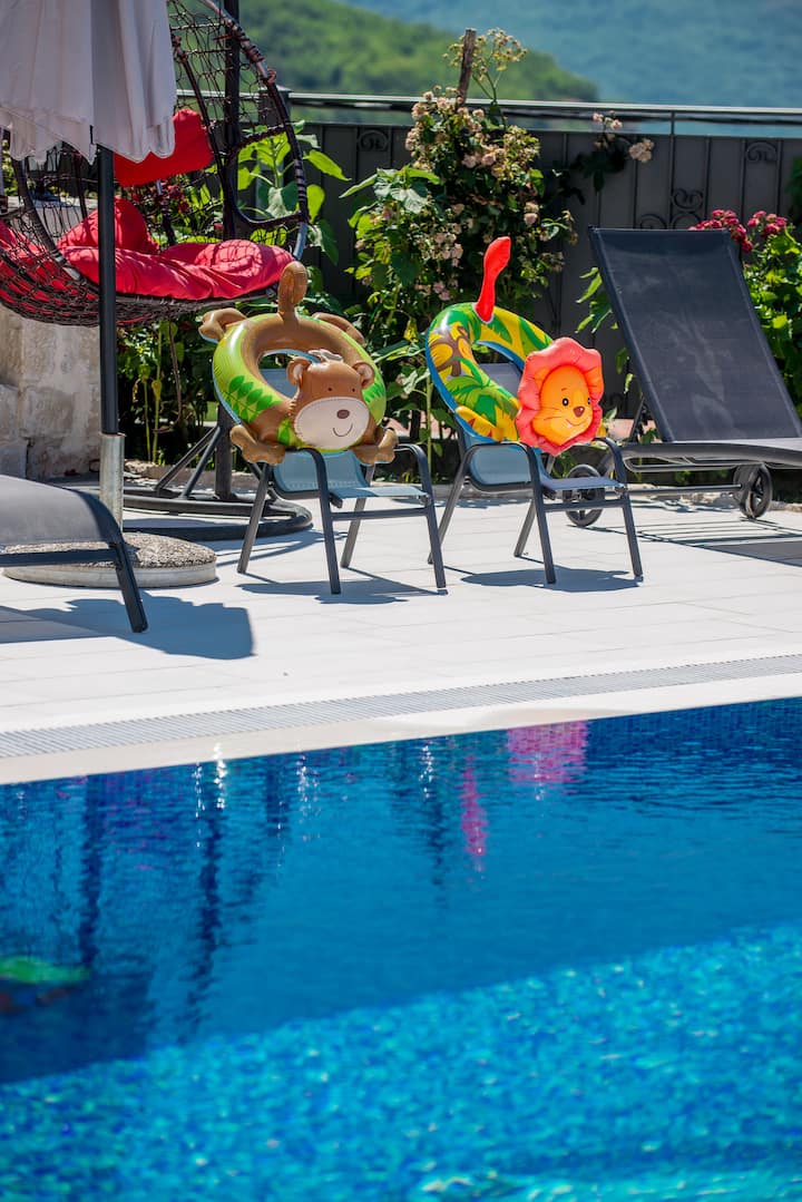 Villa Milena is a luxurious facility, wrapped in stone and surrounded by magnificent nature. It is located in a quiet place called Mirac, elevated 600 meters above the sea level and 13 km away from Old Town Kotor. This is a really nice place to escape the crowded city beaches and traffic jams.