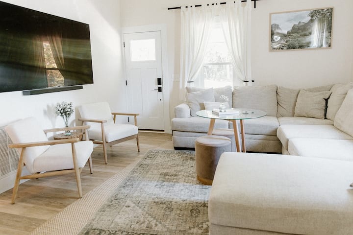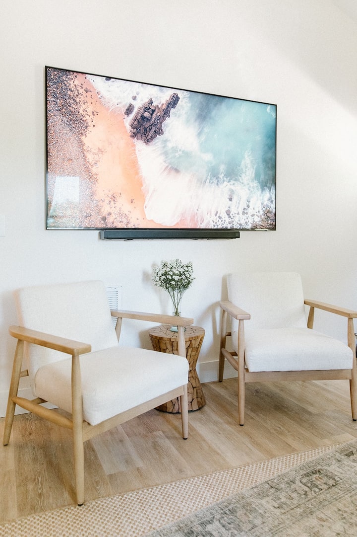 75-inch HDTV with Apple TV, cable/satellite TV, Roku, Amazon Prime Video, Netflix, HBO Max, Disney+