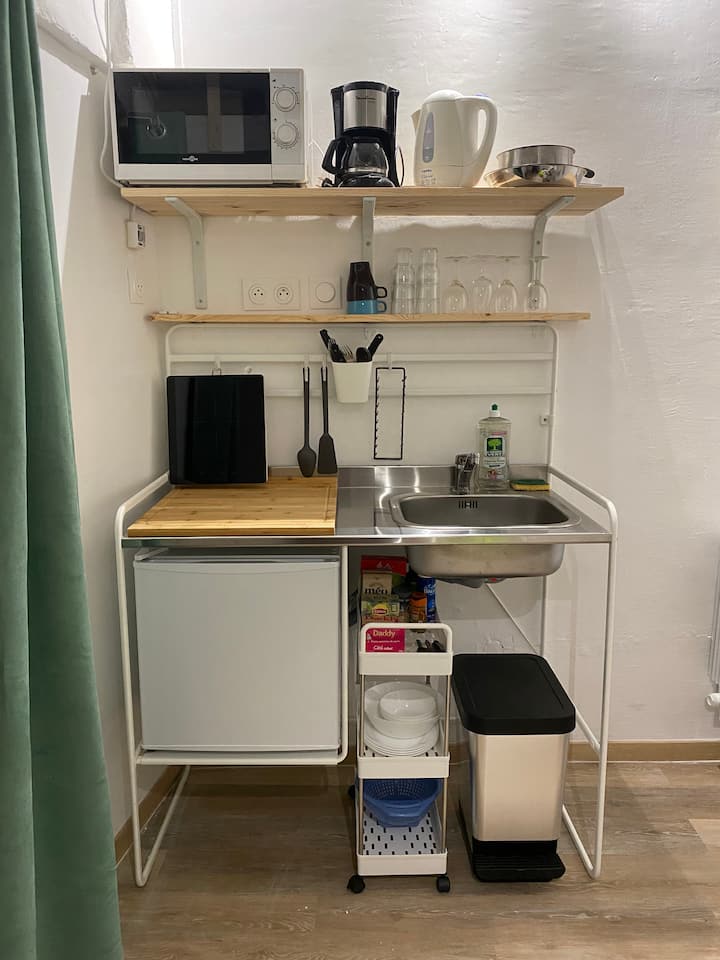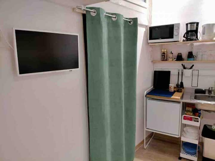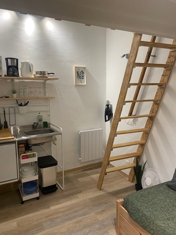 Tiny air-conditioned apartment + mezzanine in the heart of the city