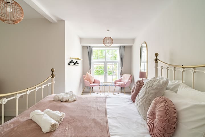 The firepit, sunbeds, alfresco dining and BBQ area are great for summer trips.