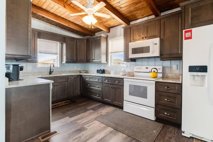 The Primary bedroom has a king size bed and provides the added privacy and convenience of a door directly onto the deck. The Guest bedroom # 1 is furnished with 2 Full size beds and guest bedroom # 2 is furnished with a comfortable queen size bed. Dream about the day you spent with your toes in the sand sitting in one of the provided beach chairs. Wash off the sand & salt using the outdoor shower hose at the bottom of the deck before heading in for a snack. The full-sized washer & dryer will get your bathing suits & towels ready for fun the next day.