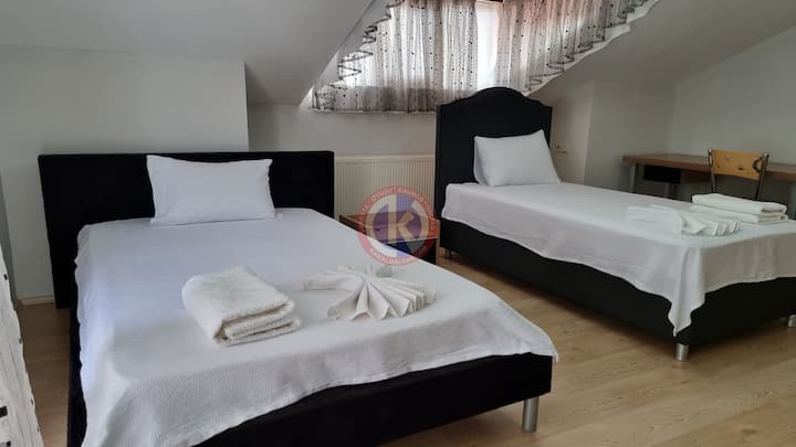 1 double bed, 2 single beds