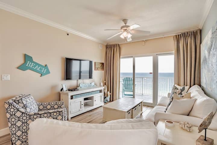 A very large laundry room is found off the kitchen with a full sized washer and dryer. The living room has plenty of comfortable seating with a large HDTV and Smart BluRay DVD player. The living room overlooks the beach and has access to the gulf front deck. The dining room table sits 6 with more seating found at the kitchen bar.