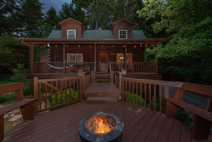 Escape to the Lux Log Cabin, a luxurious 5-bedroom retreat nestled in the serene landscapes of Weaverville, North Carolina. This spacious log cabin offers a perfect blend of rustic charm and modern amenities, making it an ideal getaway for families, groups, or anyone seeking tranquility near Asheville.