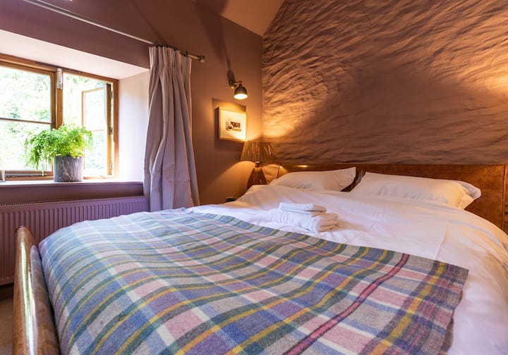 Part of an organic farm, this ancient stone building offers the character of a former century and the style and comfort of the 21st. Penbanc Bach sleeps 4 people in a super king size master bedroom and the same, or two singles in the second bedroom.