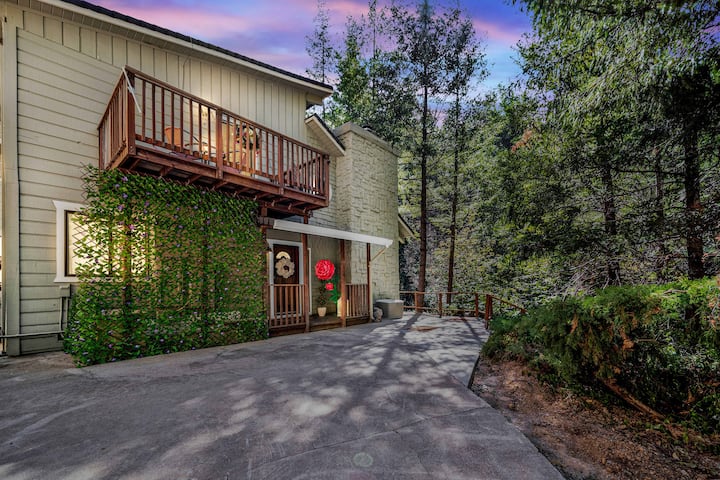Follow the white rabbit to this pet friendly magical cabin in the woods. Surrounded by over 2 acres of trees you’re truly in Wonderland! With a large backyard deck overhanging the creek enjoy the sounds of nature while dining outside, bbqing, making pizzas, roasting marshmallows or soaking in the hot tub. Or relax in the spacious cabin, soak in tub, read in the library, play board games or stream your favorite shows. The possibilities are endless … you’ll never want to leave!