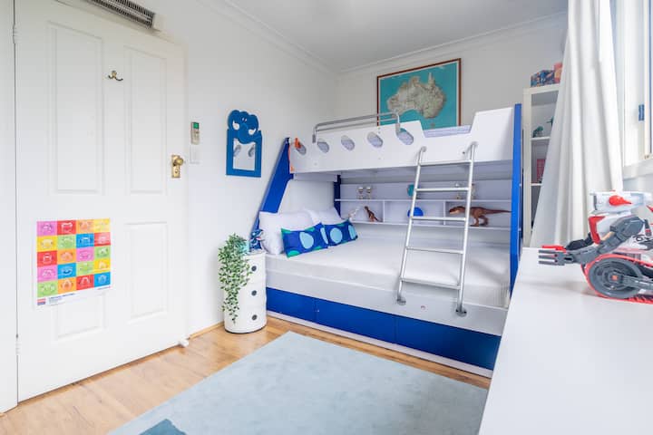 Bedroom 2: 1 x Bunk Bed (double + single bed)