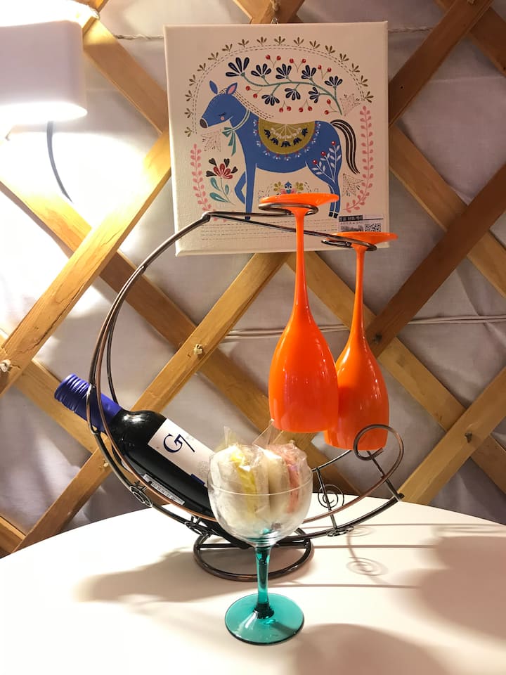 Mongolian Ger 'Dream of the Meadow' Dogs allowed. Free barbecue, spa, sauna.