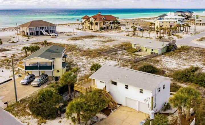 The entire vibe of this home is "Island Life". If you're looking for a cozy spot on the beach that will make you feel more like you're at home than a tourist on vacation, this is the place for it. Our cute beach house is located on Pensacola Beach, and the water is within sight from the roomy outdoor deck. There are 2 bedrooms and 1 bathroom, kitchen, living space, outdoor space, and everything you need to enjoy life on the beach!