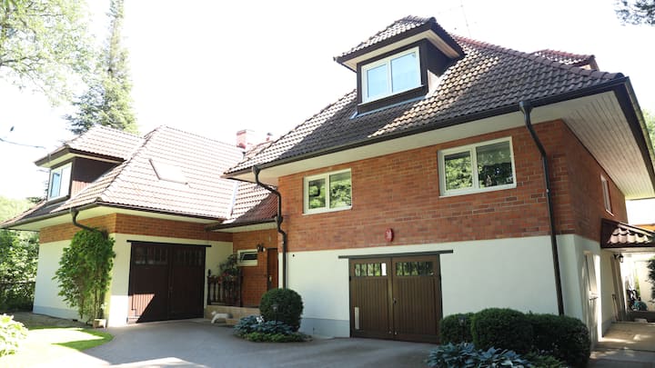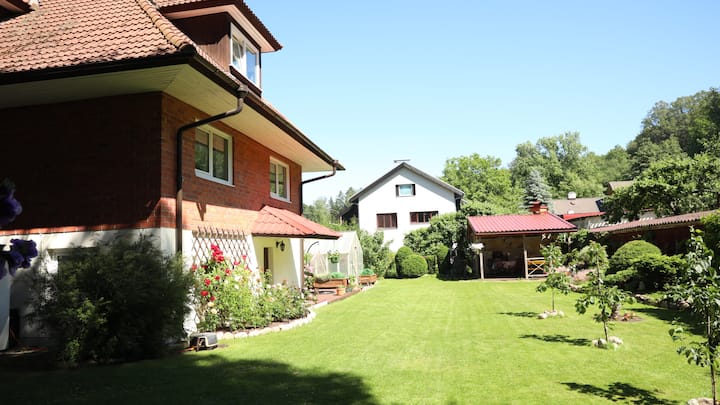 A private house (400m2) with a garden in Nõmme district (8 km from city center) is situated in a beautiful nature and far from big highways.