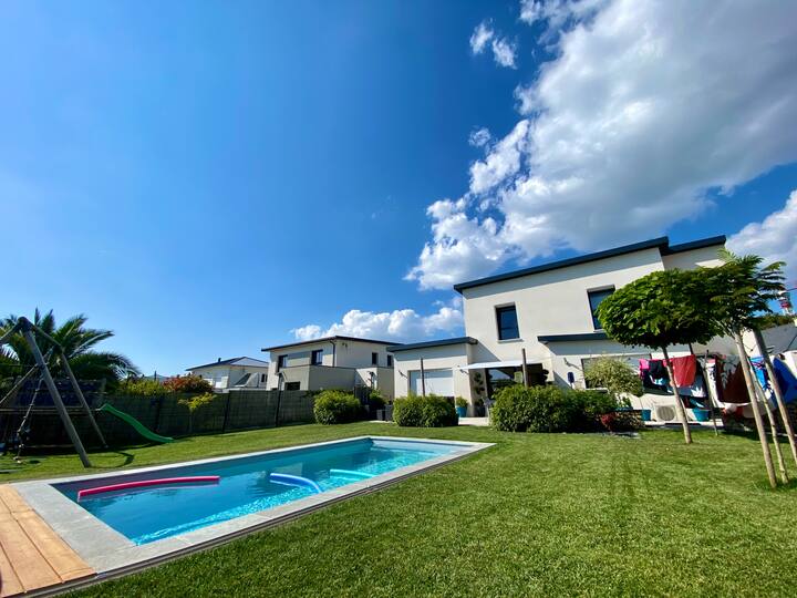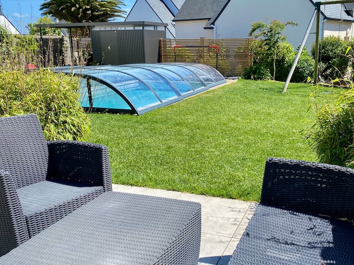 In the garden, you can enjoy the swimming pool heated to 29 degrees, and regardless of the weather thanks to the shelter that can be handled easily to cover it partially or entirely depending on the wind or air temperature. Many water games are at your disposal. In the shade of the trees, installed on a sunbed you can watch your children play in the pool. Night swimming with the kids thanks to the pool projector, a success guaranteed.