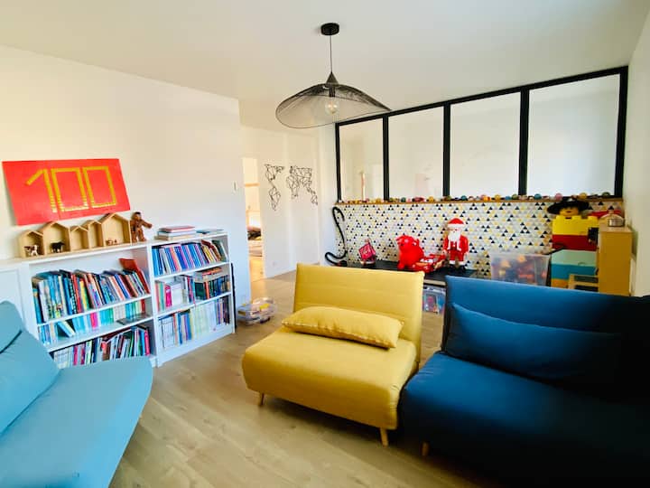 Equipment at your disposal: a kayak, 2 adult bikes, about fifty fashionable board games, foosball, a children's desk, an electronic piano, pool games, a computer, a swing with slide, a sandbox, rollerblades, scooters ...