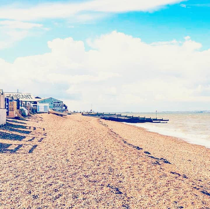 The Cook's Cottage: a charming coastal retreat in the heart of Whitstable, with an outdoor kitchen w/BBQ, a summerhouse/den w/ cinema projector, and an enclosed sunny garden. A minute's walk to Whitstable's beach and harbour.