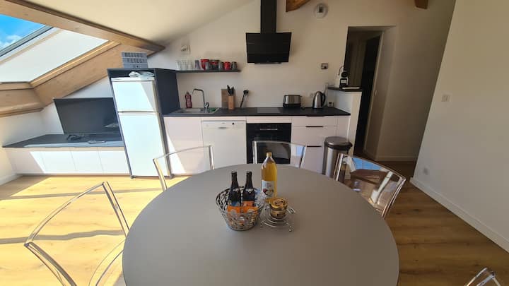We are a family of 2 adults and 2 children. We live on Veyrier du Lac, located on the east shore of Lake Annecy. We rent: - All year round an independent apartment located on the floor of our villa - during our holidays our villa (main residence) with garden and heated pool in season. We would be happy to introduce you to our beautiful region! See you soon!