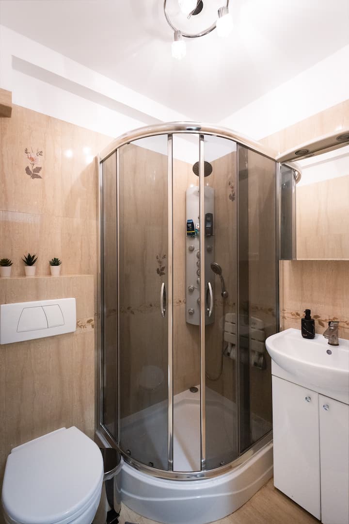 Alongside the beautiful design and modern equipment, the apartment is located in the very center of Warsaw, from where you can reach the most important attractions of the capital in a few minutes.
