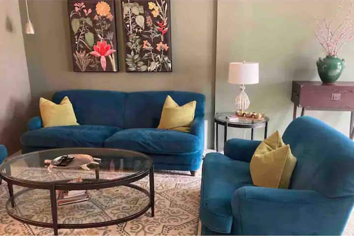 Our house features WiFi, flat screen high definition television with Netflix, washer and dryer, iron, ironing board, fans and blow dryers. With 2 king beds, 1 queen, 2 adjustable single beds and two twin Italian memory foam rollaway beds we can comfortably accommodate as many as 10 guests. There is plenty of off-street parking for up to 6 vehicles. A high chair and PacknPlay is available upon request.