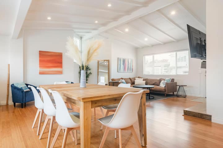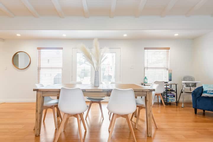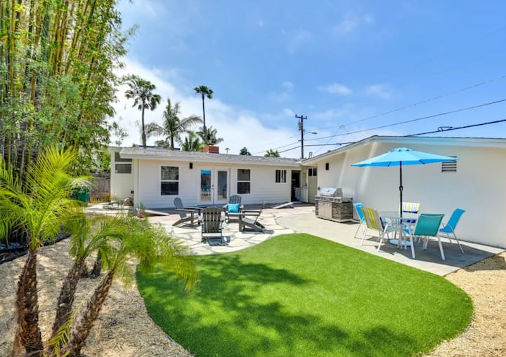 Family Beach House AC Backyard BBQ—1 block 2 sand