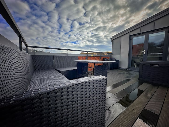 a modern apartment block in the middle of Hythe, the Penthouse has been decorated and fitted out to an extremely high standard . The apartment consists of 3 bedrooms , one being the snug, with 2 large terraces overlooking Hythe, with open plan kitchen lounge and dining area providing all that you need for a fantastic stay.