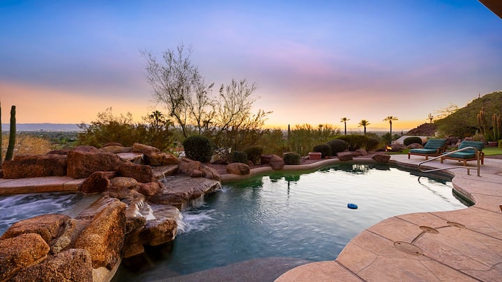 Camelback Heights invites you into a world where luxury meets landscape. This 8-bedroom estate feels more like a private resort carved into the desert cliffs where every moment is accompanied by panoramic views and every corner is designed for memory-making.