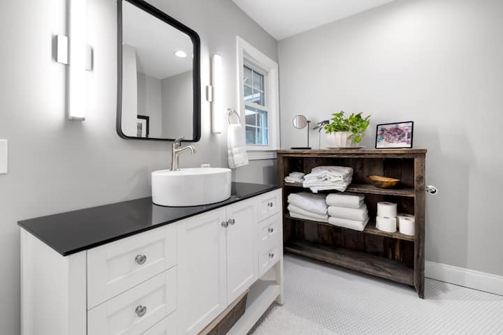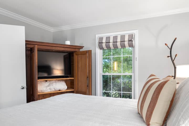 Our back deck is our favorite part of our home—a blissful haven for us and our guests. The tin roof above makes a wonderful noise when it rains, perfect for a nap. It is a great place to entertain or to be alone with a book.