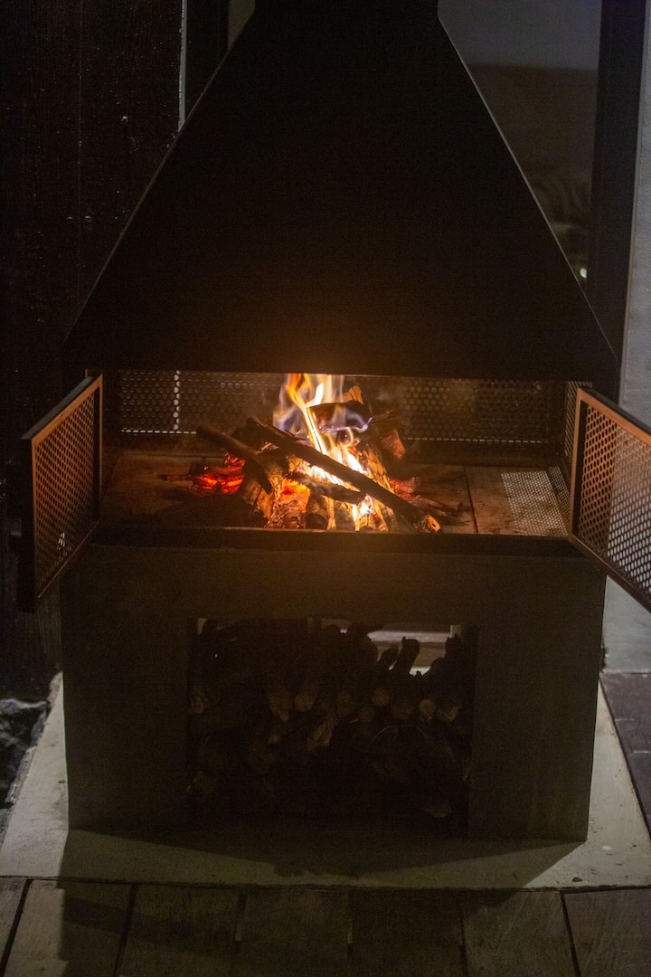Relax with the outdoor shower and hot tub.