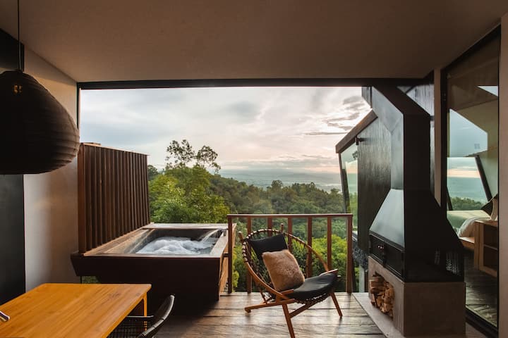 Panoramic Cabin w/2ppl Hot tub/Fireplace/BBQ Deck