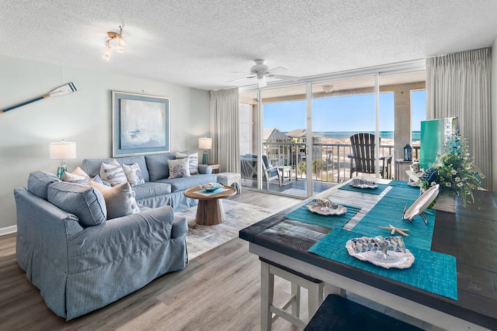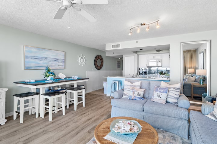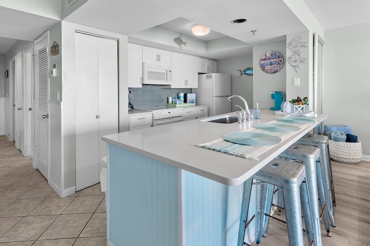 Indulge in the ultimate comfort within the bedroom, where a king-size bed awaits with an abundance of plush pillows. In the inviting living area, you'll find a snug sofa that effortlessly transforms into a queen-sized sleeper sofa, providing extra sleeping accommodations should you need them. The well-appointed kitchen is fully equipped with all the essential appliances and cookware, allowing you to prepare and savor delightful meals throughout your stay with ease. Step out onto your private balcony to experience the true highlight of this condo – the mesmerizing ocean views. Sip your morning coffee as you watch the sunrise over the horizon or unwind with a glass of wine while the sun sets in a burst of colors. The balcony provides the perfect vantage point for dolphin spotting and enjoying the sound of crashing waves.
